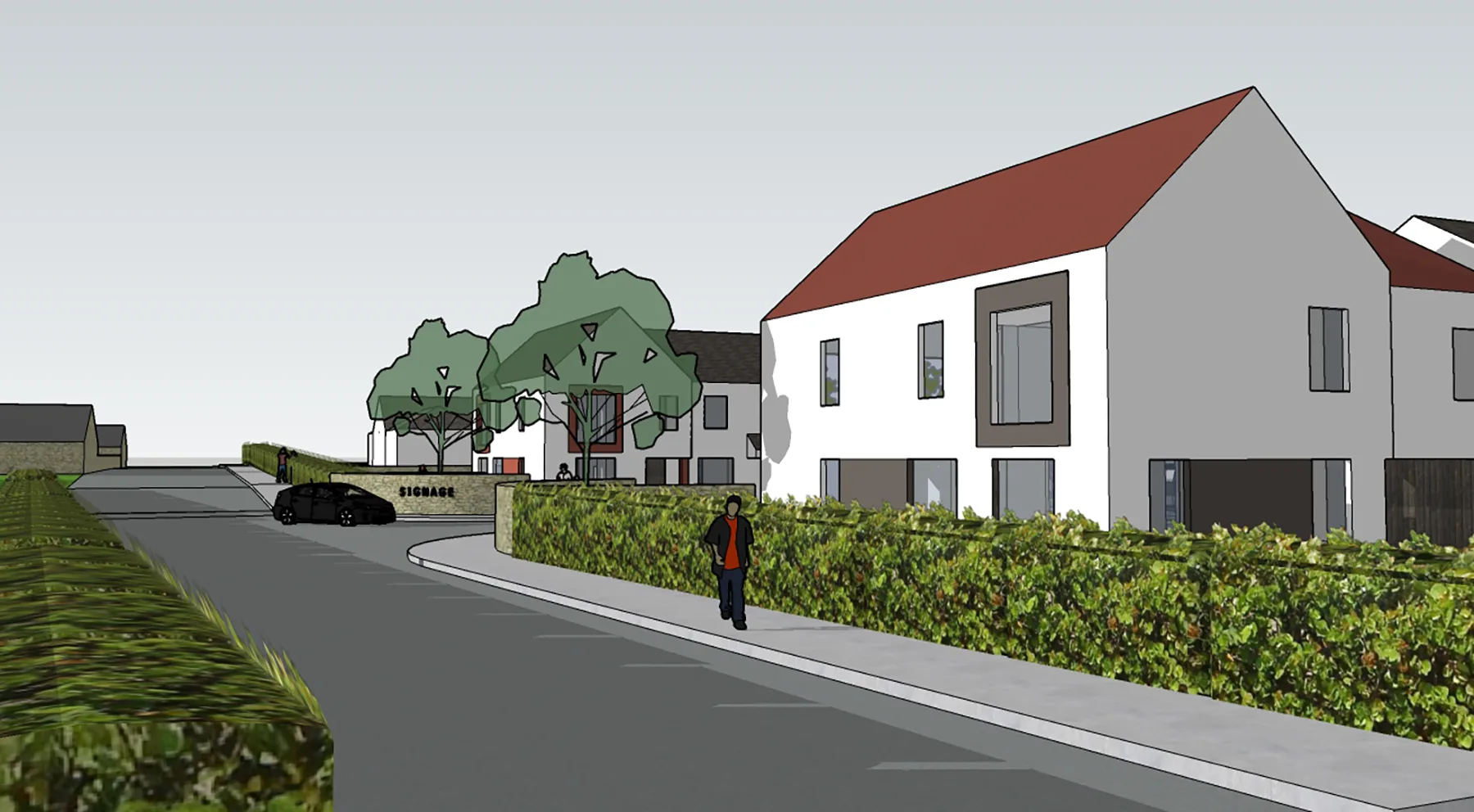 By combining familiar vernacular references with contemporary detailing and spatial planning, the development delivers a modern rural neighbourhood that is both contextually sensitive and distinctly of its time.