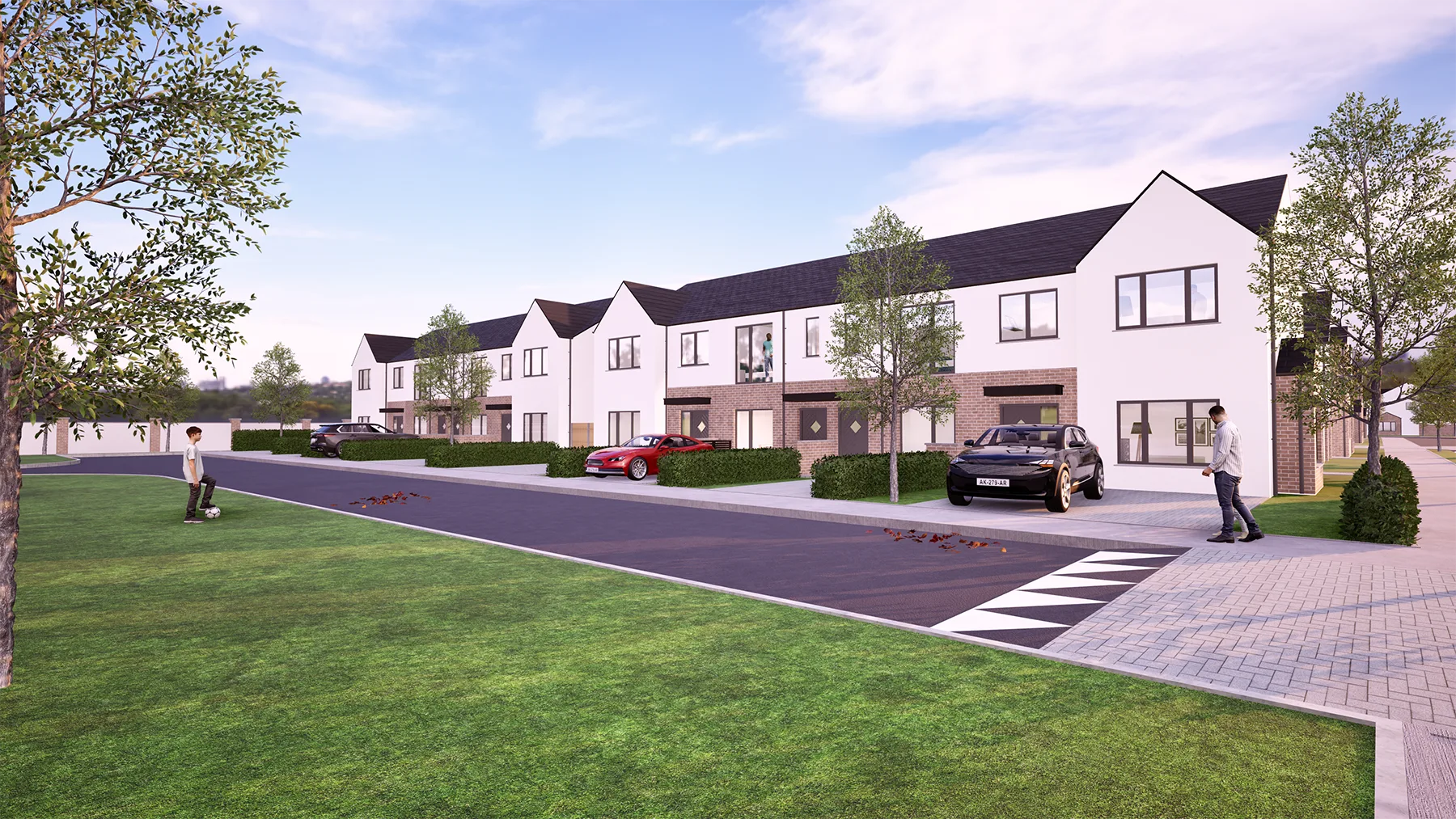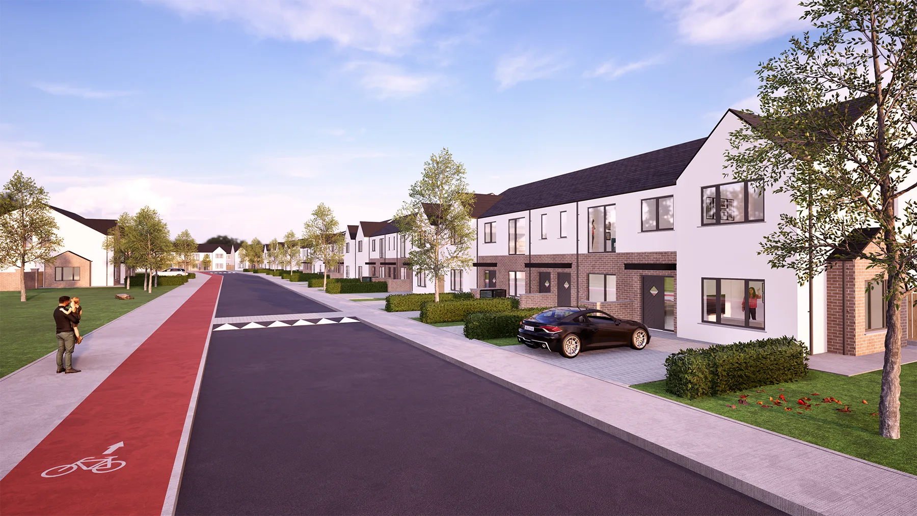The layout prioritises community and liveability, with generous open green spaces woven throughout the development. These shared spaces encourage active play, informal social interaction and outdoor recreation, while also supporting biodiversity through soft landscaping and tree planting.